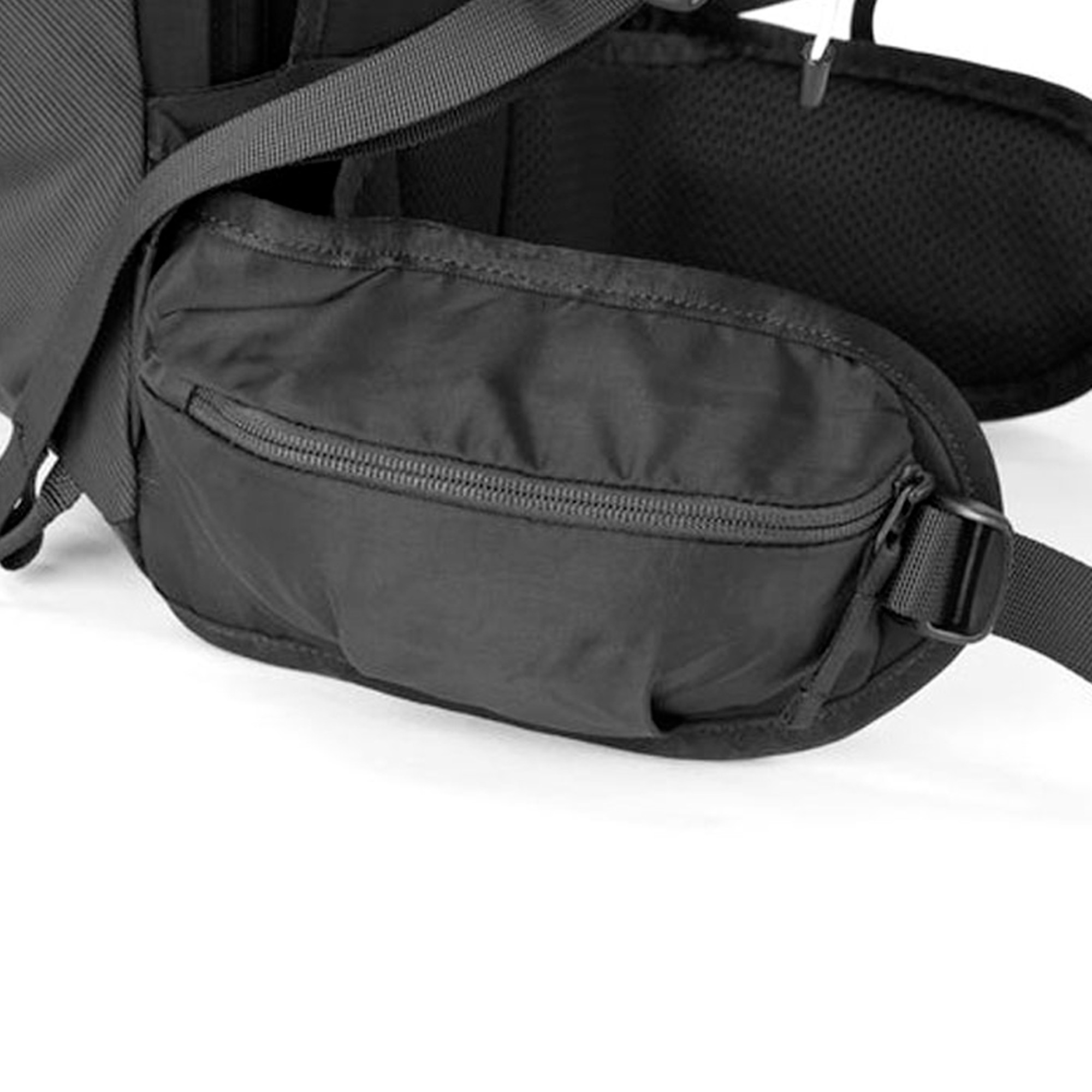 Анатомическая спинка с вентиляционными каналами и регулировкой роста подстраивается под индивидуальные особенности владельца, а удобный поясной ремень равномерно распределяет вес. Усиленная ткань с водоотталкивающей пропиткой переносит долгие переходы и не боится дождя.