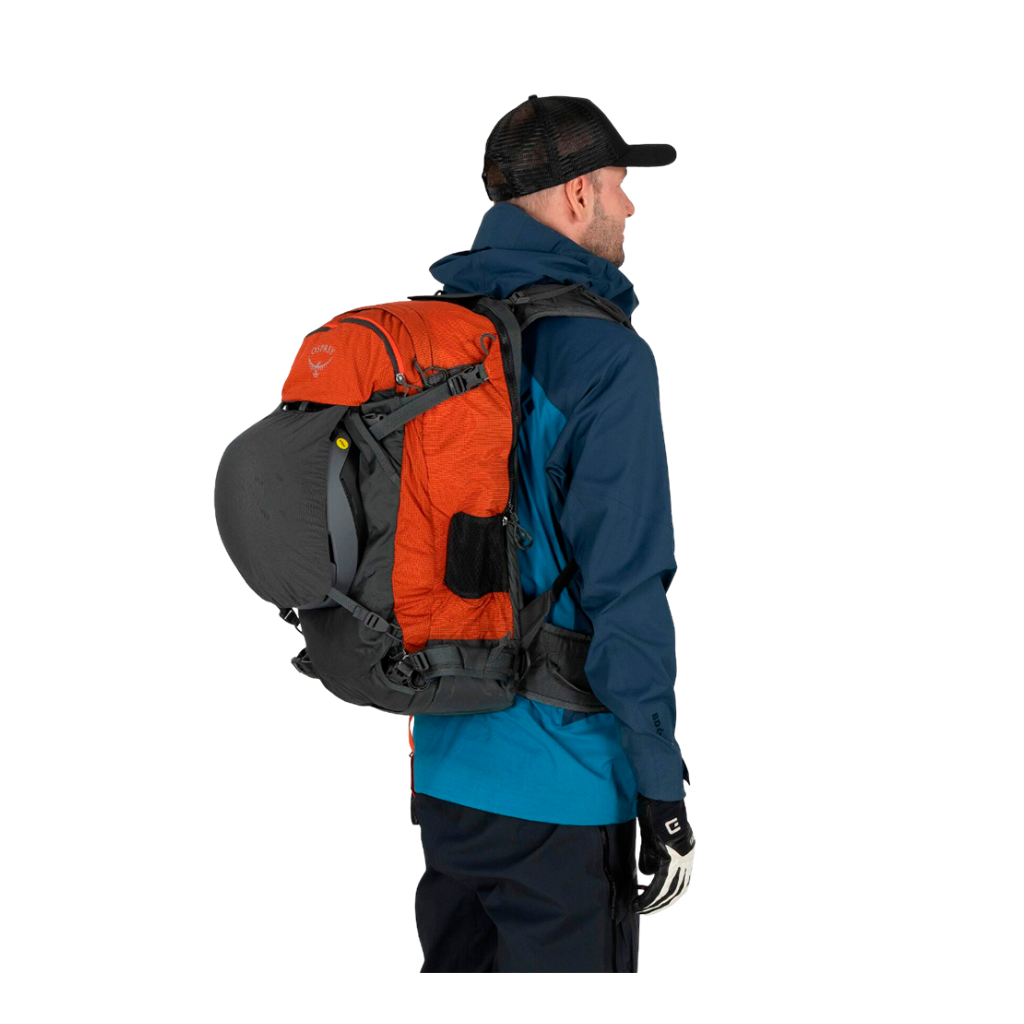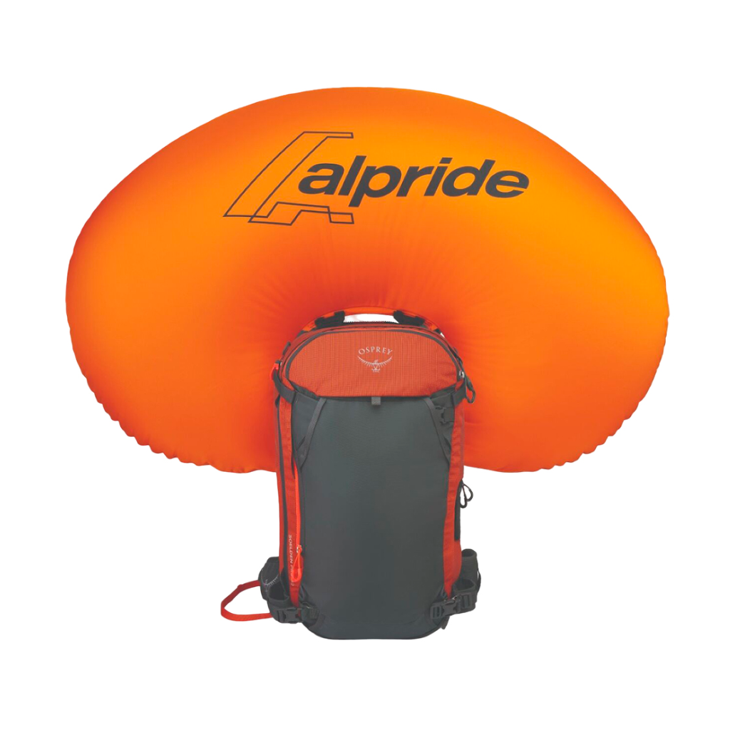 Система Alpride E2 работает на базе суперконденсаторов, что делает её надёжной при низких температурах и удобной в эксплуатации — без необходимости замены газовых баллонов. Рюкзак сочетает лавинную защиту и комфортную посадку, характерную для горной серии Osprey.