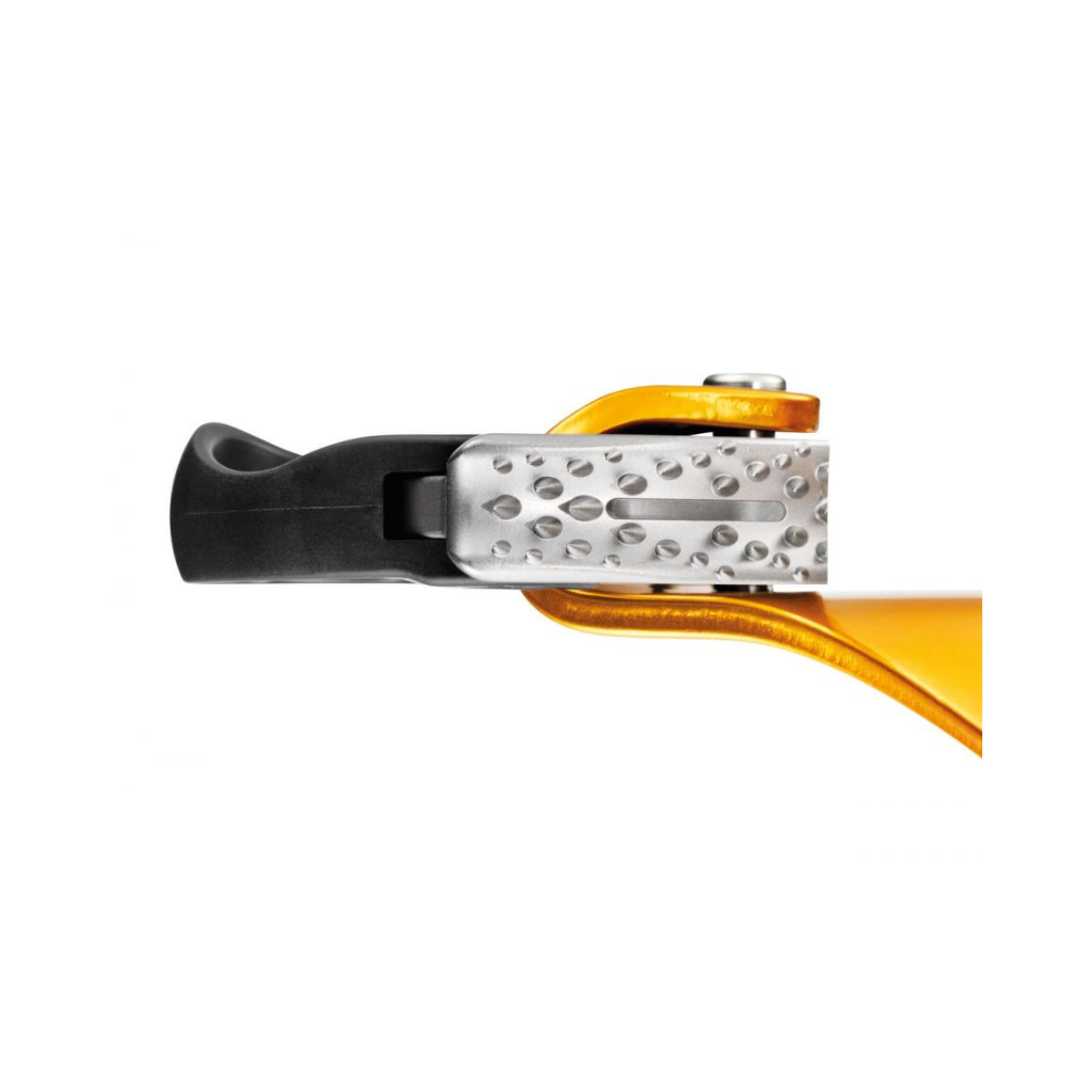 — кулачок из нержавеющей стали с наклонными зубцами и прорезью для самоочистки обеспечивает надежное удержание даже на грязной и обледенелой веревке