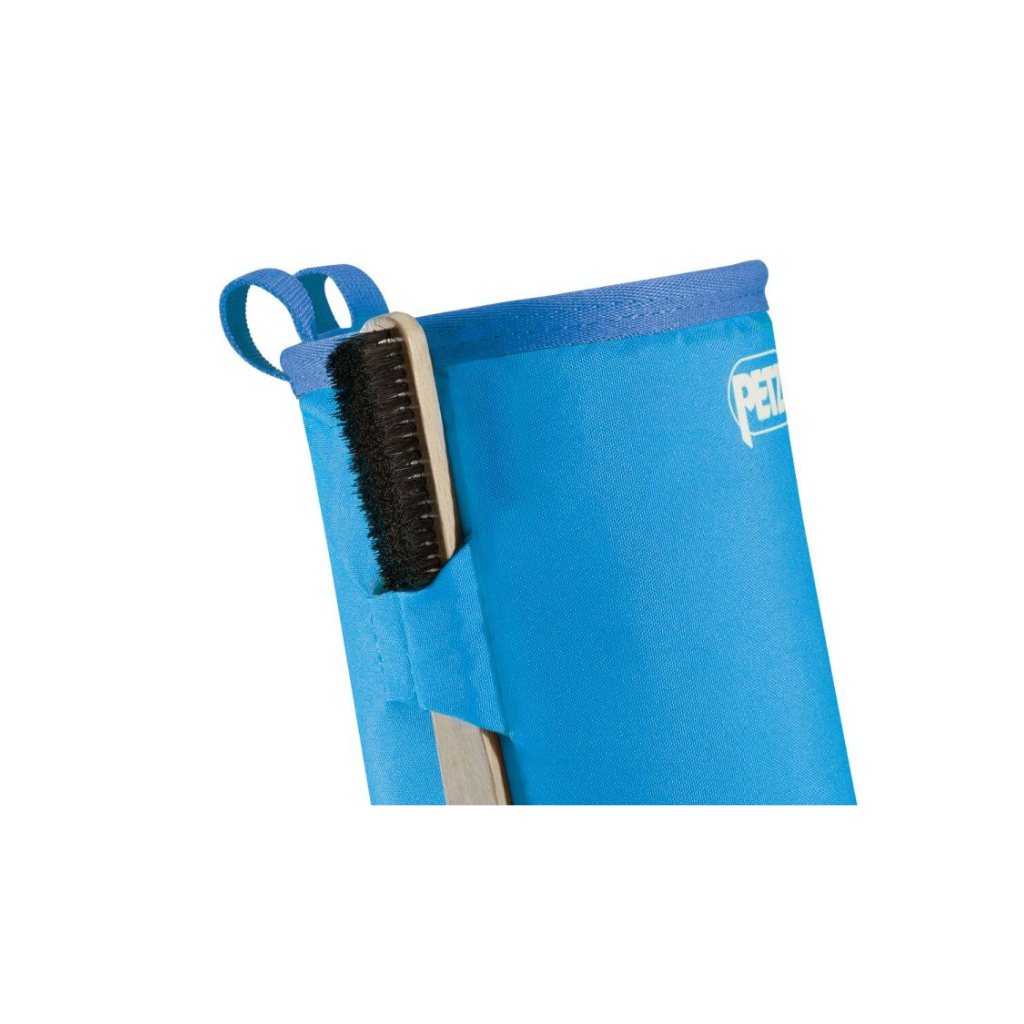 Жёсткий обод сохраняет форму мешочка и облегчает использование одной рукой, а мягкая внутренняя часть обеспечивает комфортное использование и хорошую вместимость. Bandi легко крепится на пояс с помощью текстильного ремня и подходит как для тренировок в зале, так и для скалолазания на естественном рельефе.