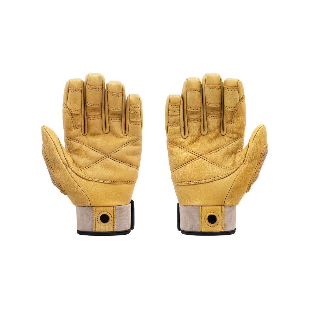 Перчатки выполнены из мягкой, но прочной кожзаменительной ткани с укреплёнными вставками на ладони и пальцах, что значительно увеличивает срок службы даже при регулярном контакте с верёвкой и тяжёлым снаряжением. Манжеты с эластичной вставкой обеспечивают плотное прилегание к запястью, препятствуя попаданию мусора внутрь, а открытые пальцы на большом и указательном пальцах повышают чувствительность и удобство при манипуляциях с карабинами и узлами.