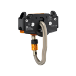 Устройство оснащено поворотным captive-карабины с эргономичной формой, что позволяет легко и быстро устанавливать ролик на трос одной рукой.