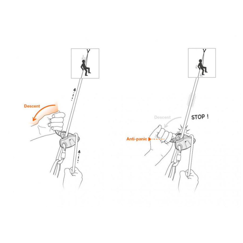 Эргономичная рукоятка и кулачковый механизм обеспечивают плавную и контролируемую подачу верёвки при спуске.